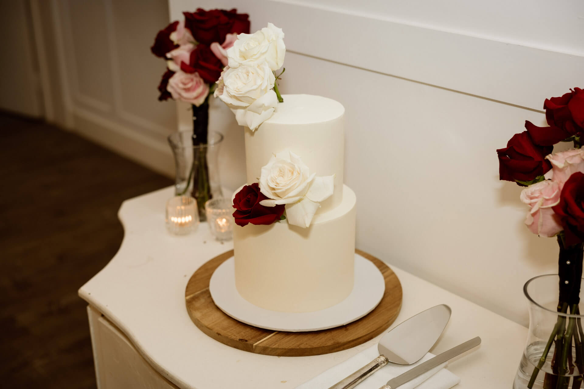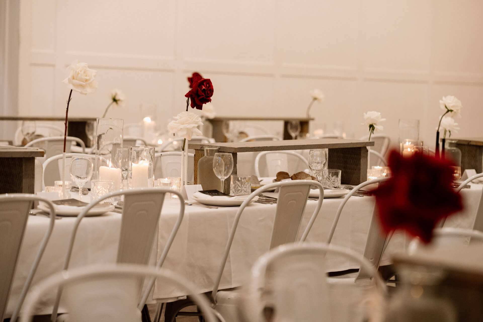 For the winter wedding of Saskia & Shaun it was all white & red.